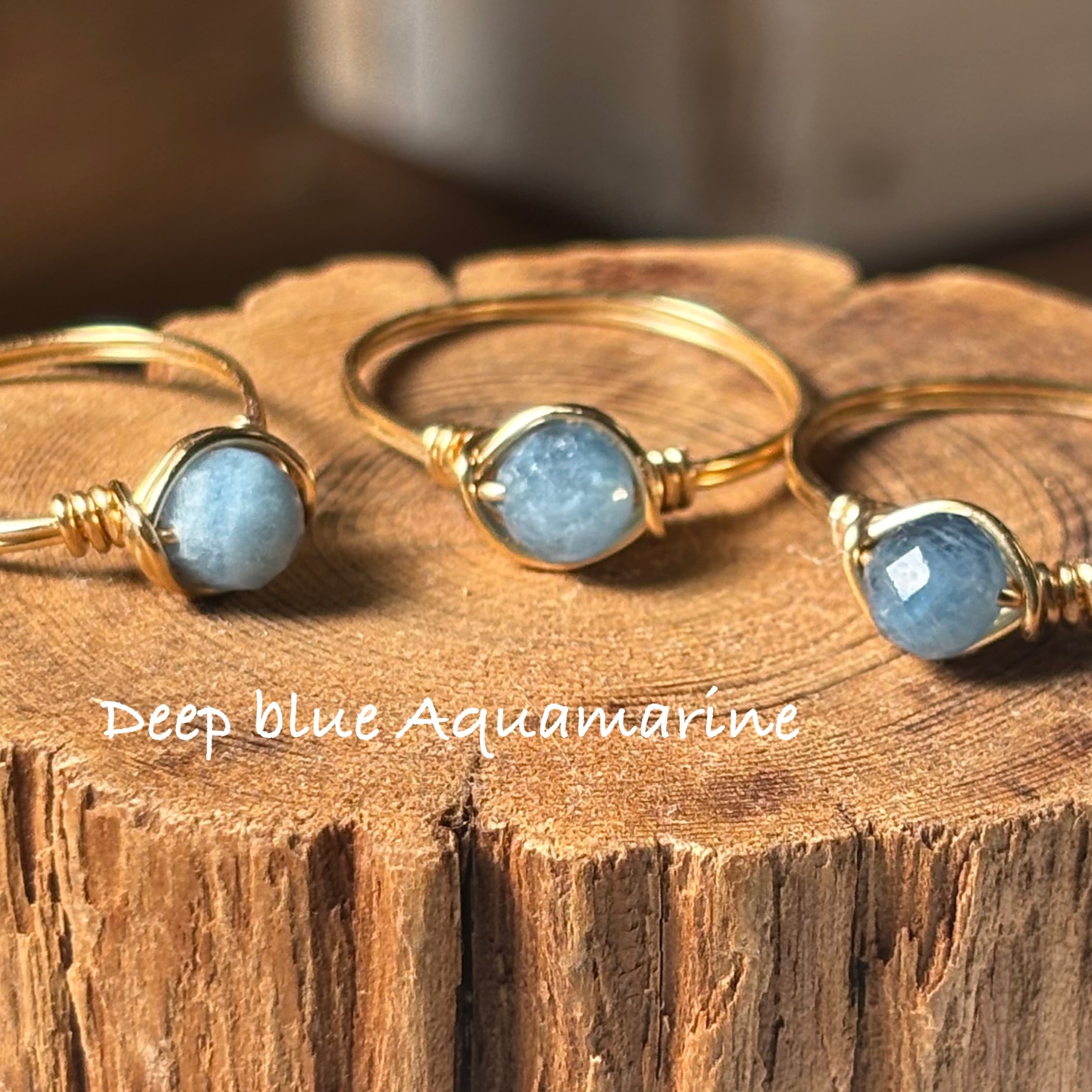 深い藍の癒しのリング「ディープブルーアクアマリン」天然石リング