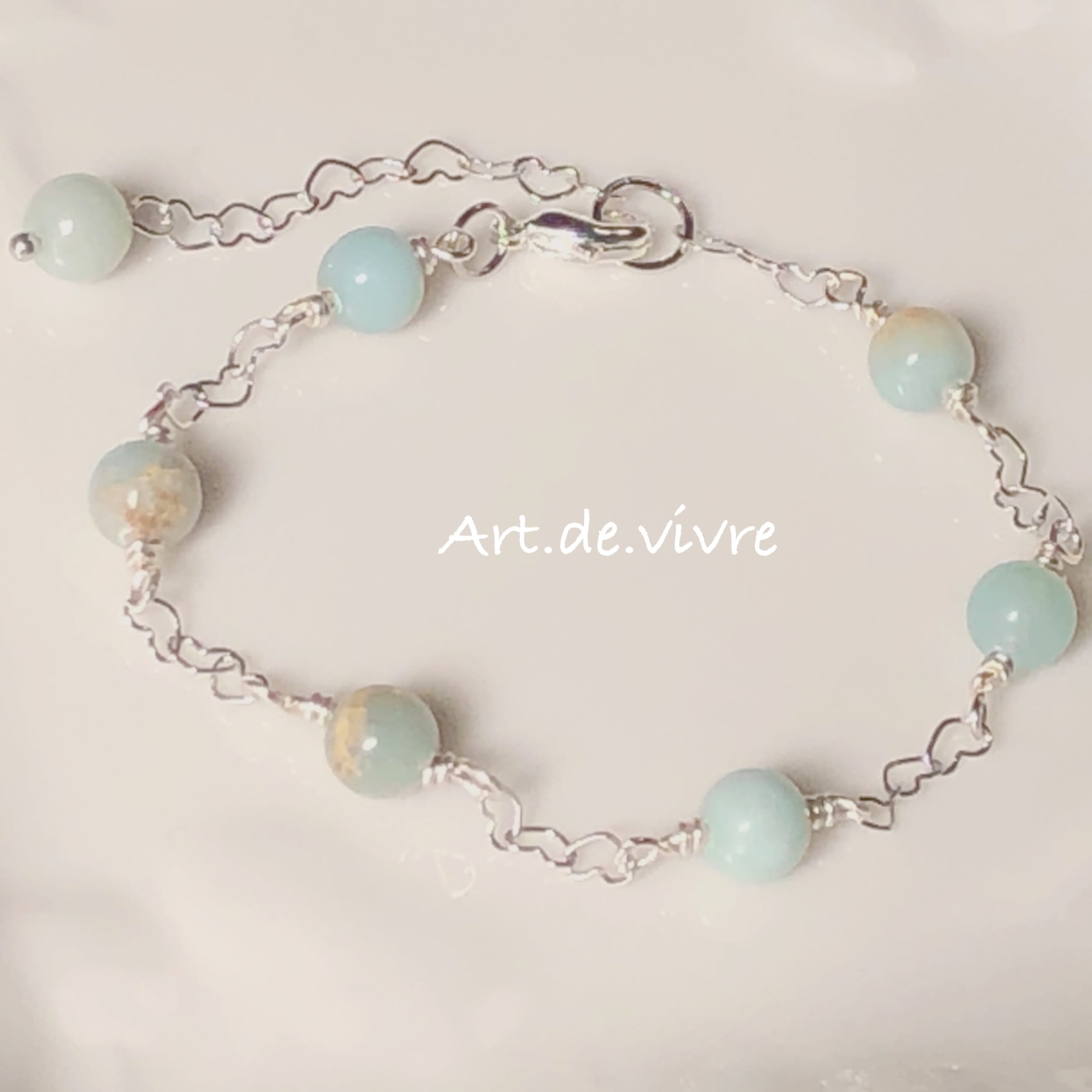 アースブルーのインプレッションストーン&ハートチェーンの天然石ブレス