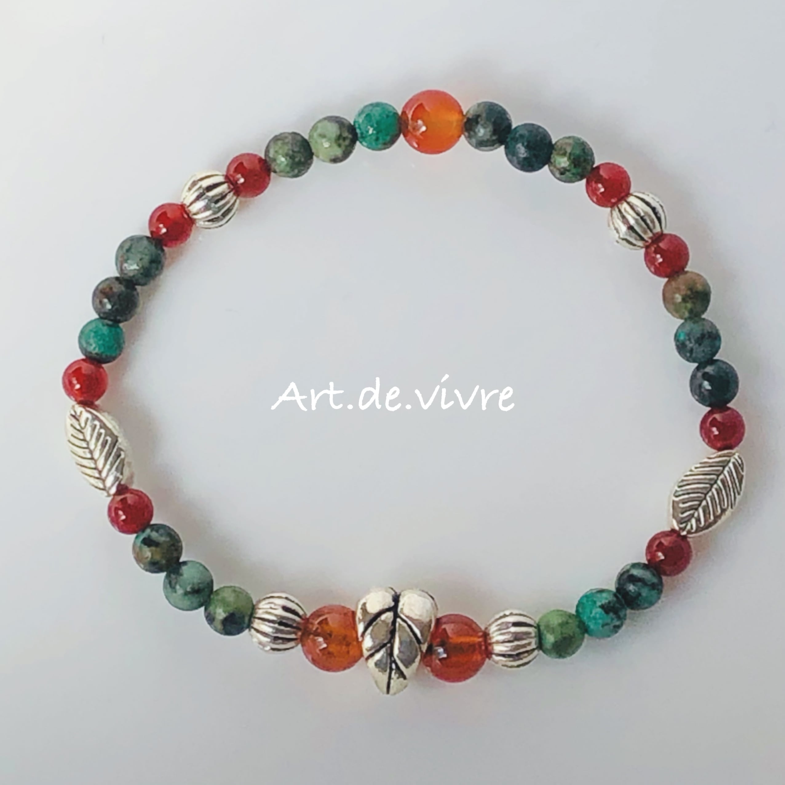 華奢で大人可愛い!!シルバーリーフ&ターコイズ・カーネリアン 天然石ブレス