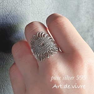 【受注生産】希少な「純銀」太陽の向日葵リング「純銀の彫金リング」ピュアシルバーSV999