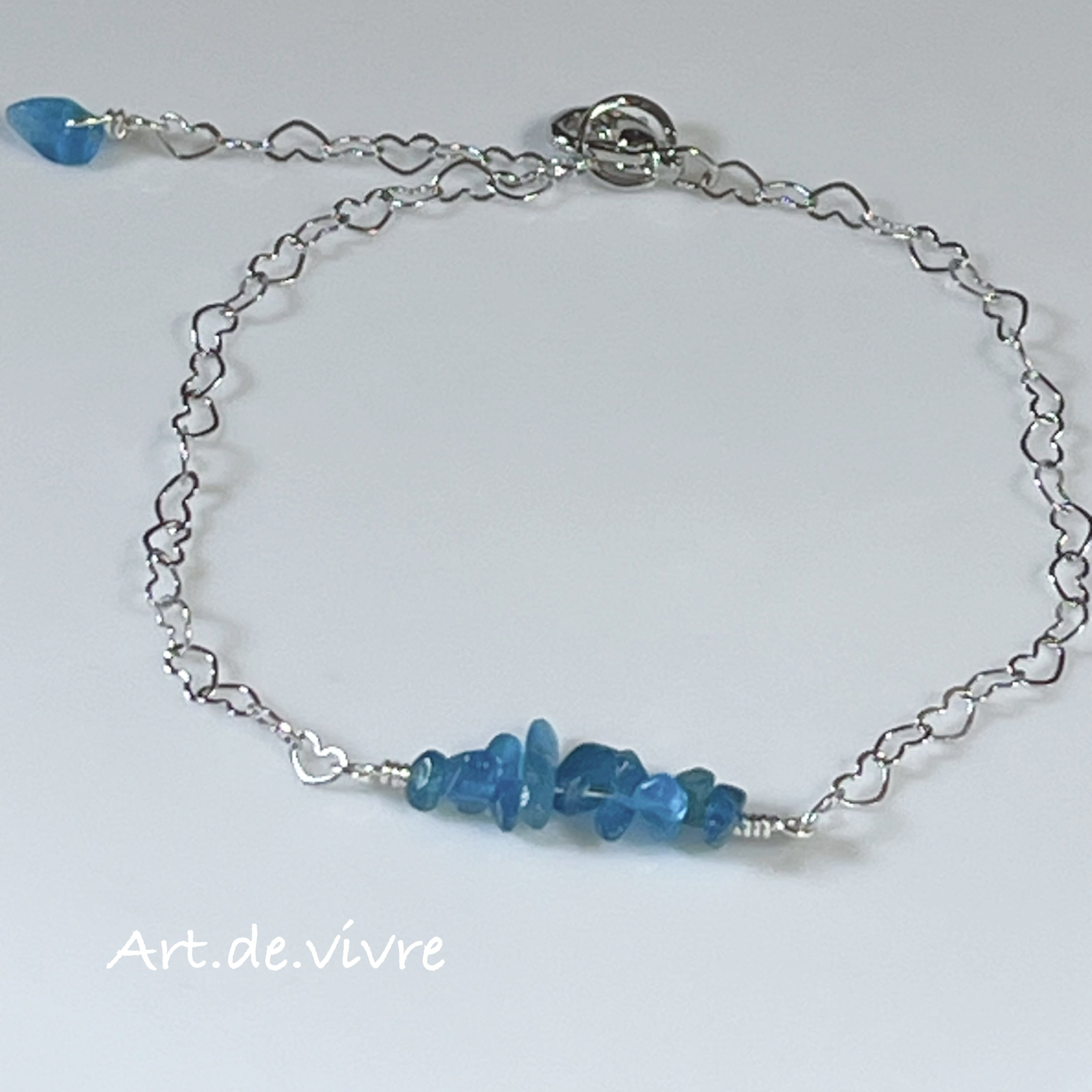 10%お値下げ中!!「夏色エスニックな青」ネオンブルーのアパタイト&ハートチェーンの夏ブレス