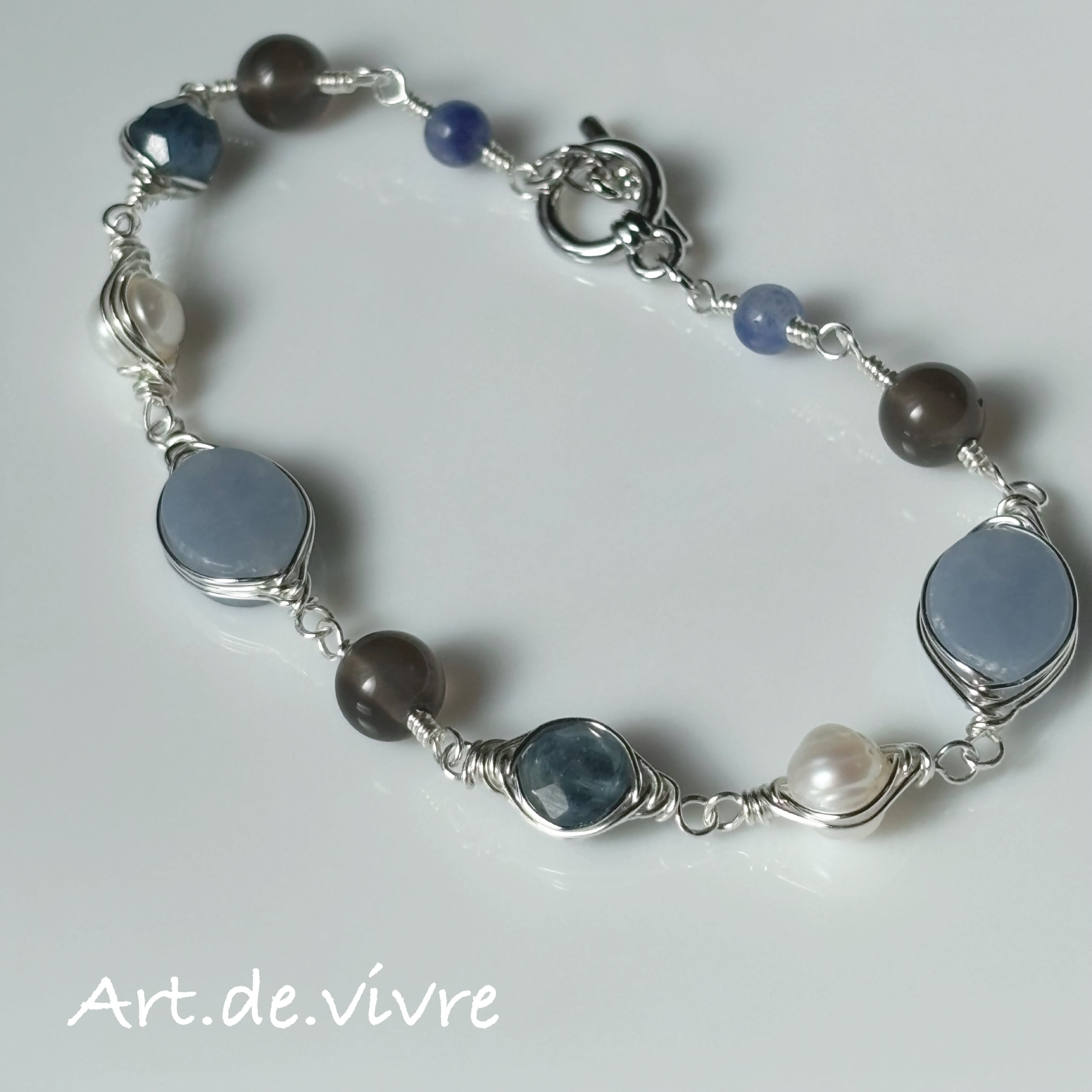 フォーマルにも映える「エンジェライト」&「ディープブルーアクアマリン」&「淡水パール」のブレス